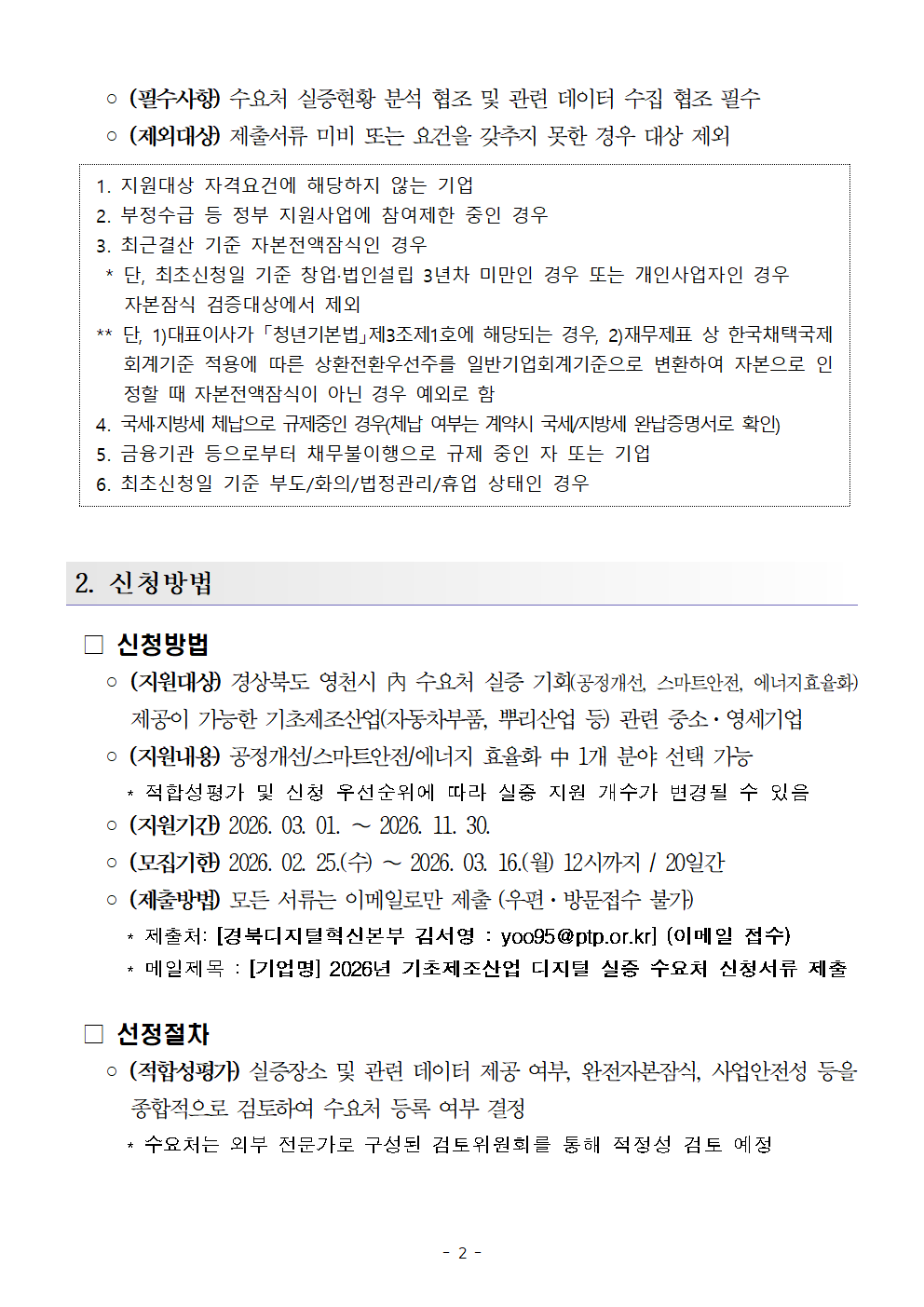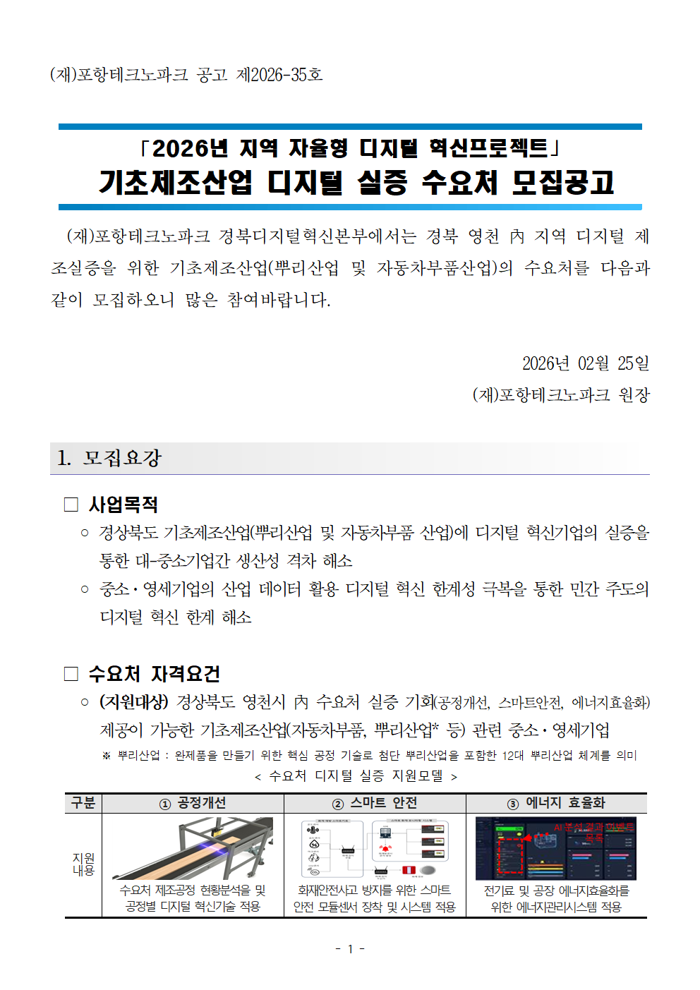 [공고-타기관] 2026년 지역 자율형 디지털 혁신프로젝트(영천) 「기초제조산업 디지털 실증」수요처 모집 공고 |