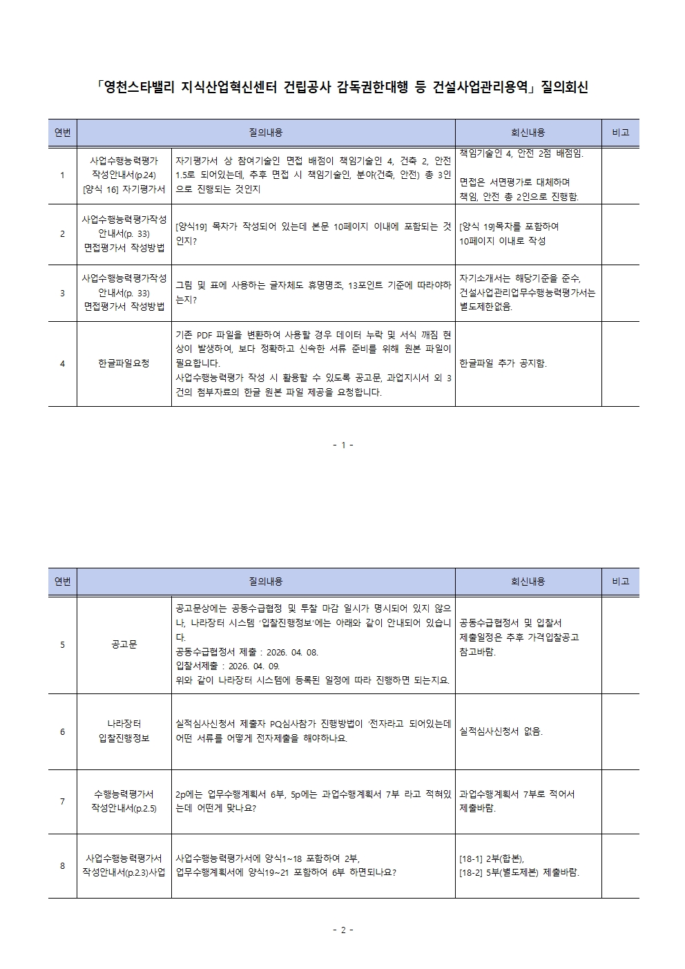 [질의회신] 영천스타밸리 지식산업혁신센터 건립공사 감독권한대행 등 건설사업관리용역 |